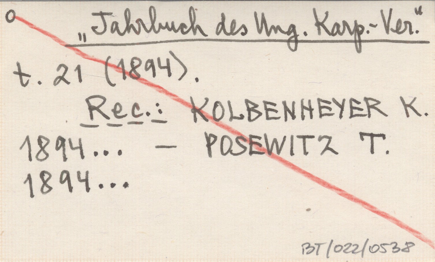 REC: KOLBENHEYER K. 1894... POSEWITZ T. 1894...