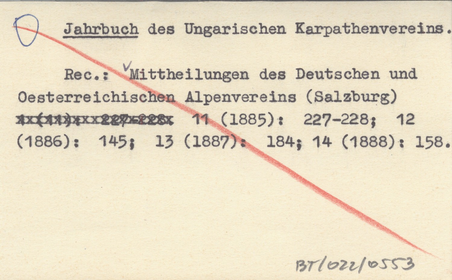 , REC: Mittheilungen des Deutschen und Oesterreichischen Alpenvereins (Salzburg) 11 (1885): 227-228; 12 (1886): 145; 13 (1887): 184; 14 (1888): 158.
