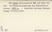 140 Jahre Kulturarbeit für die Hohe Tatra. 65. Jahresversammlung des Karpathenvereines. 1937 a