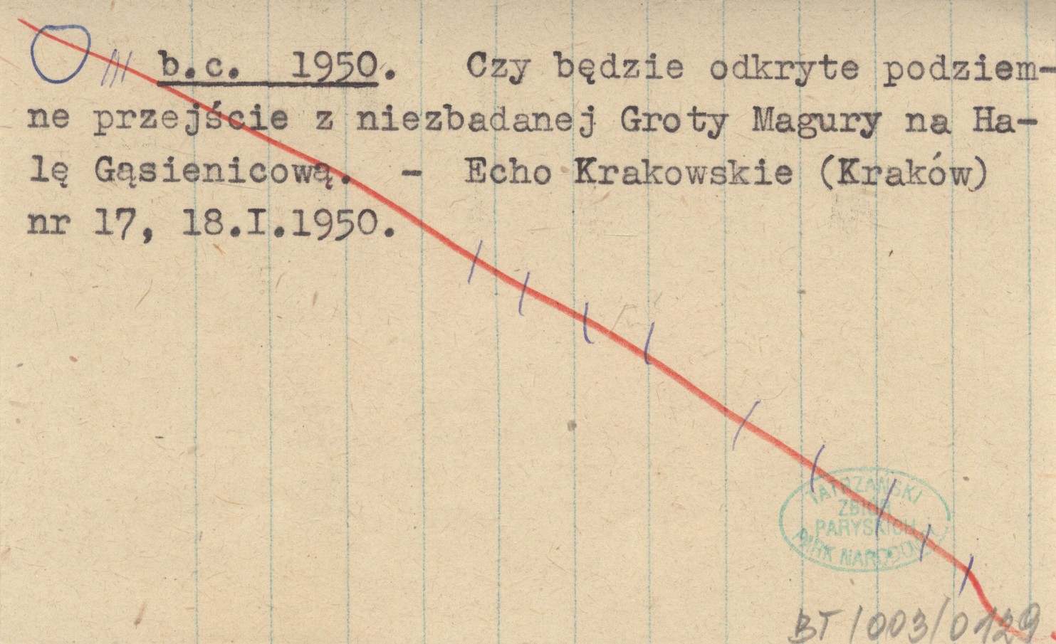 b. c. 1950 Czy będzie odkryte podziemne przejście z niezbadanej Groty Magury na Halę Gąsienicową.