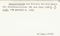 Jahresbericht, erstattet in der Jahresversammlung der Sektion Bielitz-Biala des Beskidenvereines [...]. 1908