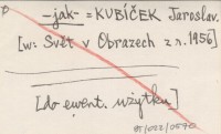 -jak- KUBÍČEK Jaroslav [Svět v Obrazech r. 1956]. [Do ewentualnego użytku].