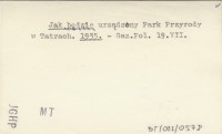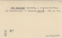 Jak walczyć naprawdę o stworzenie "Parku Narodowego" w Tatrach. 1935 b