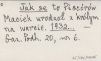 Jak se to Piscorów Maciek urodzoł z królym na warcie. 1932...