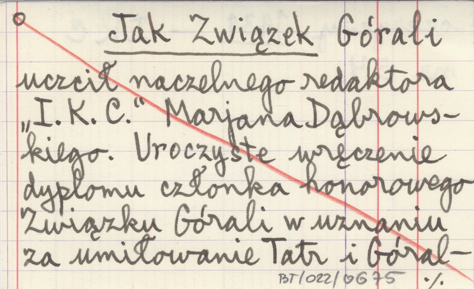 Jak Związek Górali uczcił naczelnego redaktora "I.K.C." Marjana Dąbrowskiego. Uroczyste wręczenie dyplomu członka honorowego Związku Górali w uznaniu za umiłowanie Tatr i Góralszczyzny. 1939