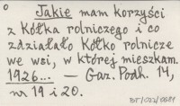 Jakie mam korzyści z Kółka rolniczego i co zdziałało Kółko rolnicze we wsi, w której mieszkam. 1926...