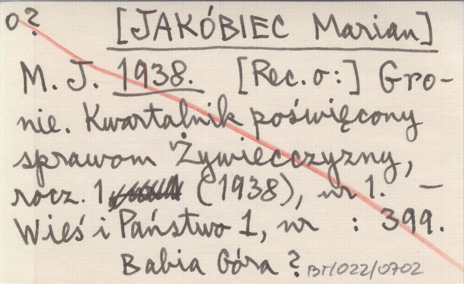 M. J. [JAKÓBIEC Marian] 1938 Gronie. Kwartalnik poświęcony sprawom Żywiecczyzny, r. 1 (1938), nr 1.