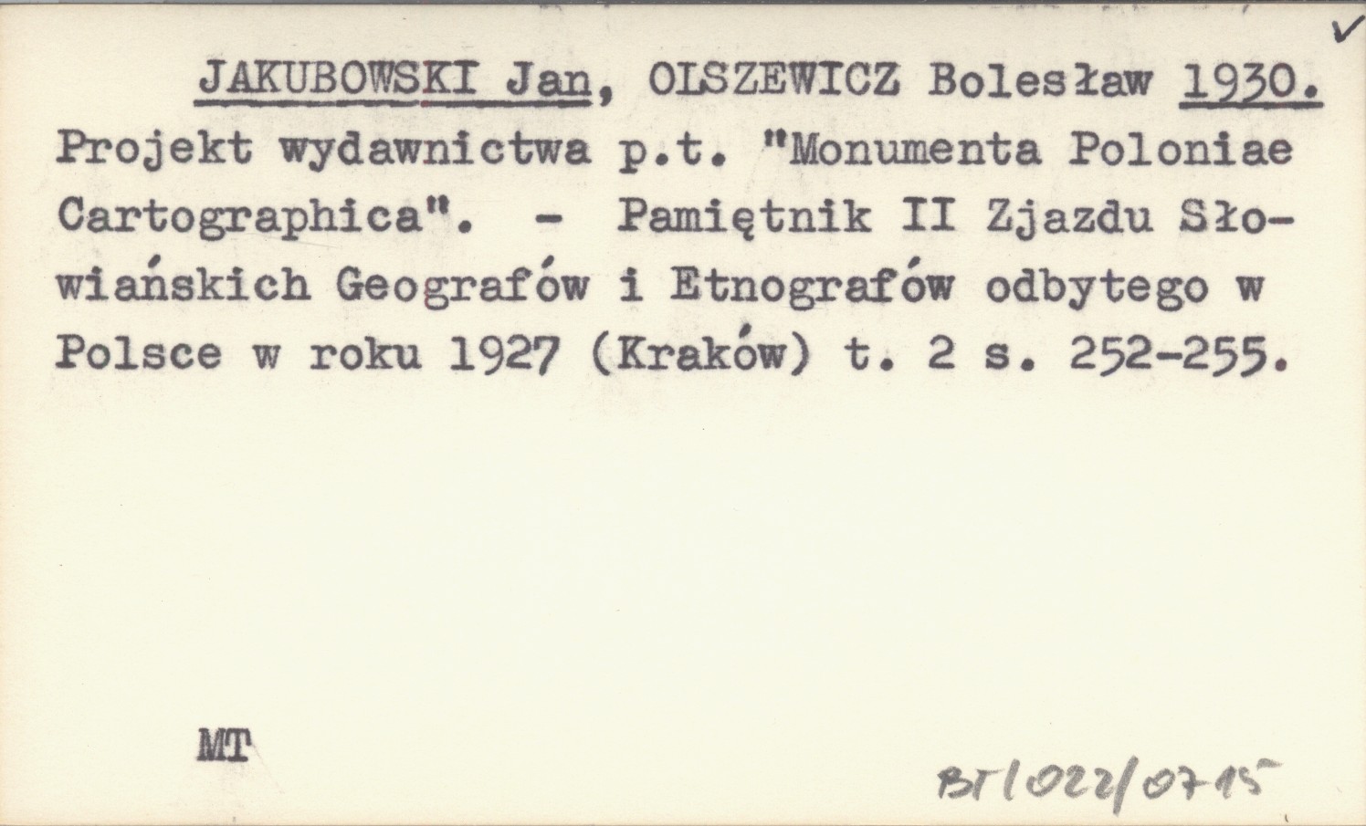JAKUBOWSKI Jan OLSZEWICZ, Bolesław. ; 1930 Projekt wydawnictwa p.t. "Monumenta Poloniae Cartographica".