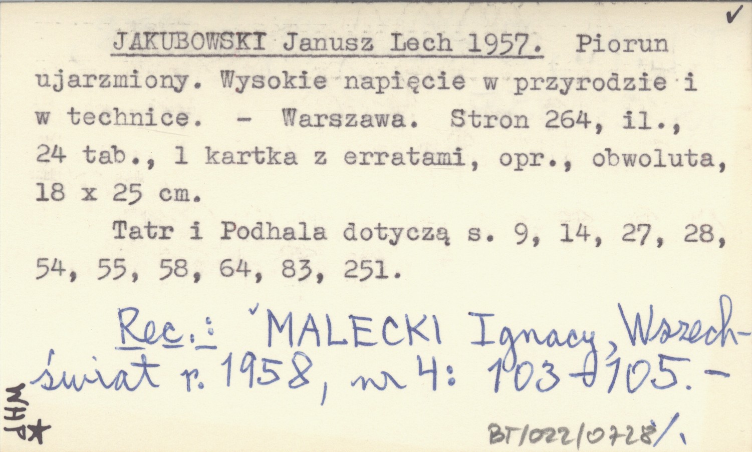 JAKUBOWSKI Janusz Lech 1957 Piorun ujarzmiony. Wysokie napięcie w przyrodzie i w technice.
