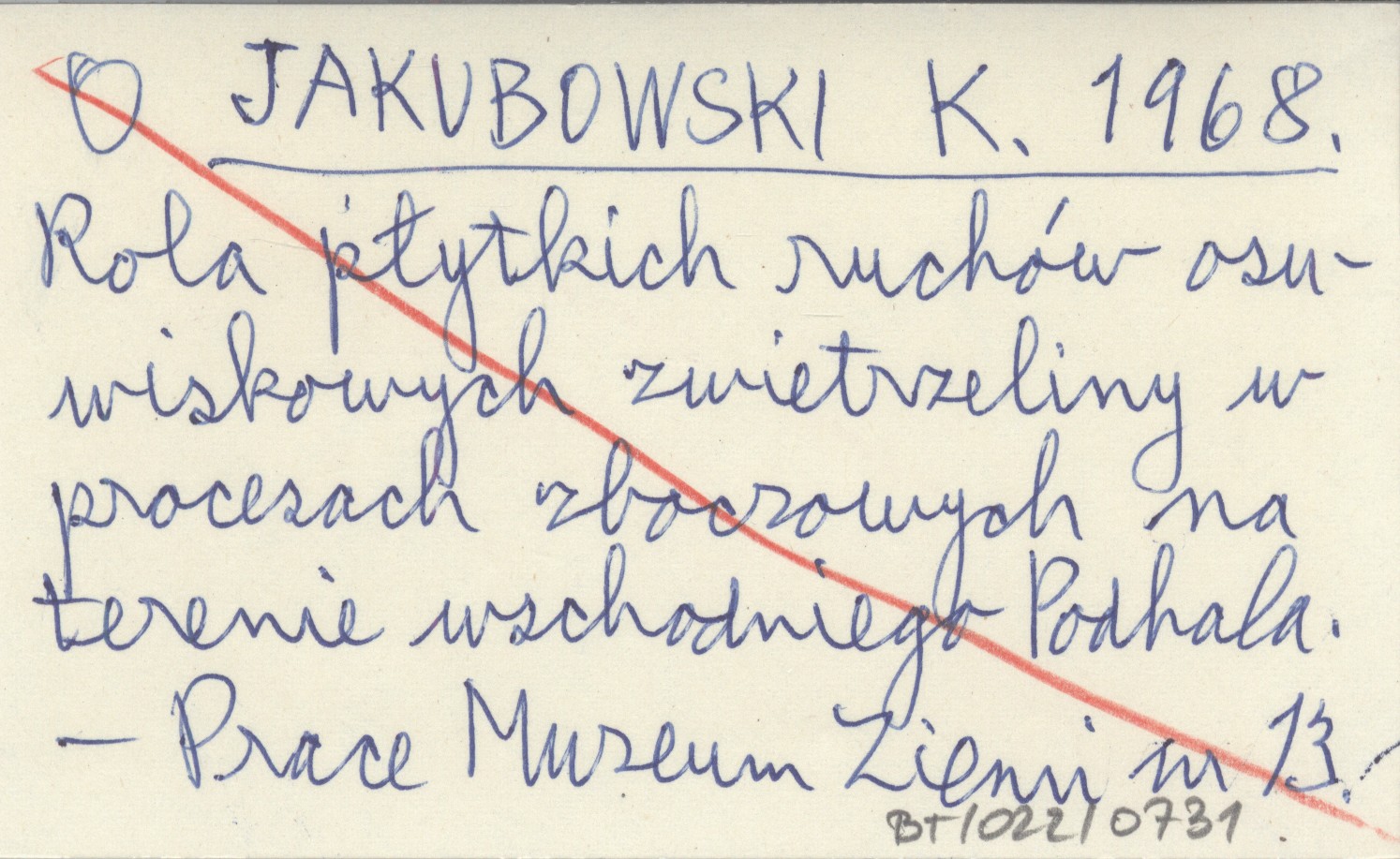 JAKUBOWSKI K. 1968 Rola płytkich ruchów osuwiskowych zwietrzeliny w procesach zboczowych na terenie wschodniego Podhala.