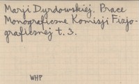 Kraków (Prace Monograficzne Komisji Fizjograficznej ; 3) , XXIII s., 470, okł., 23x16 cm. Opracował Antoni Jakubski przy współpracy Marji Dyrdowskiej.