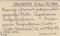 JAKUBSKI Antoni W. 1924 Recenzje zbiorowe podręczników geografji Polski. Zagadnienia zoogeograficzne.