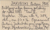 JAKUBSKI Antoni 1928 Bibliografja fauny polskiej do roku 1880. Tom II.