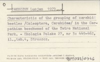 JAKUCZUN Lucjan 1979... Characteristic of the grouping of carabid beetles /Coleoptera, Carabidae/ in the Carpathian beechwood of the Tatra National Park.