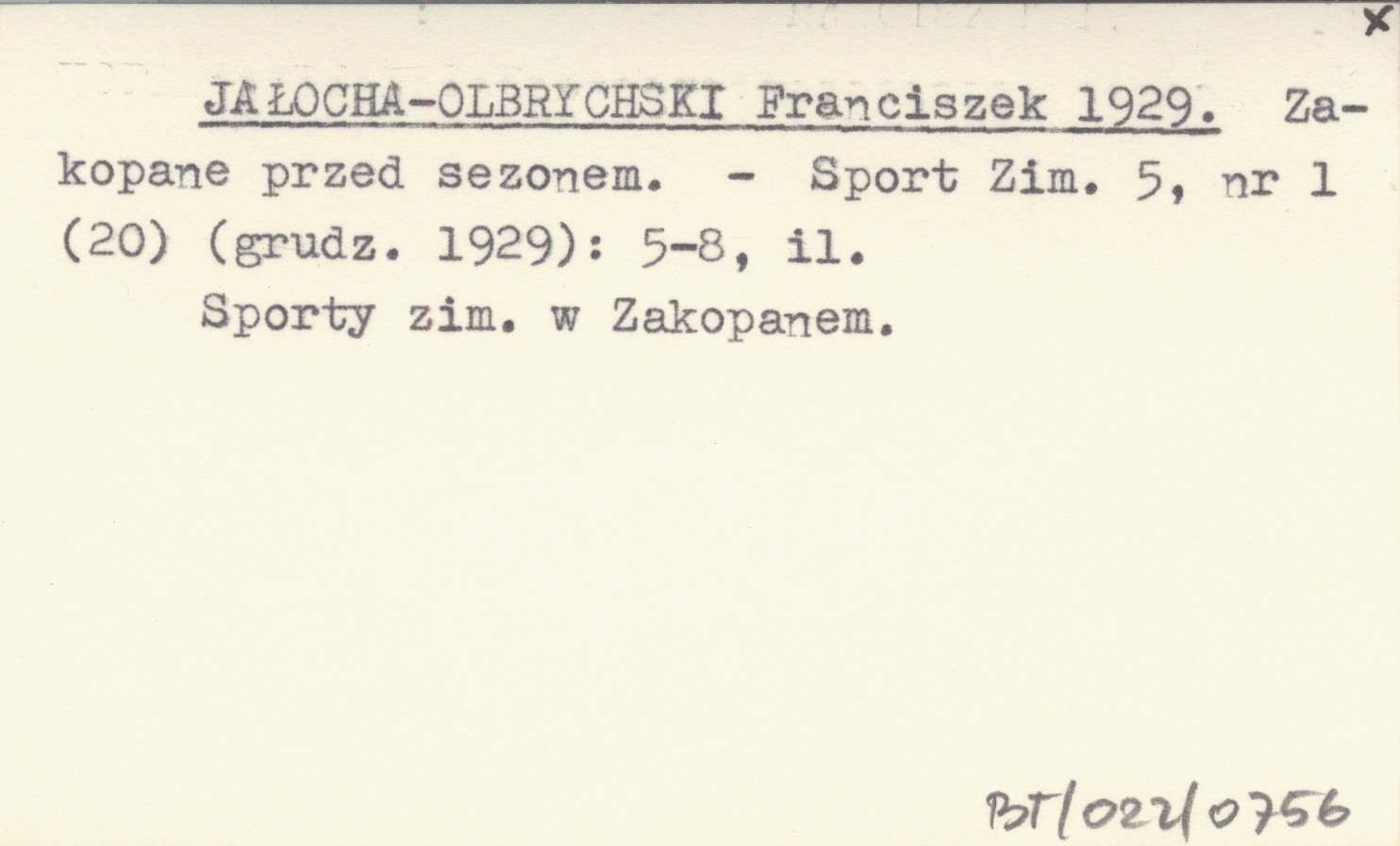 JAŁOCHA-OLBRYCHSKI Franciszek 1929 Zakopane przed sezonem.