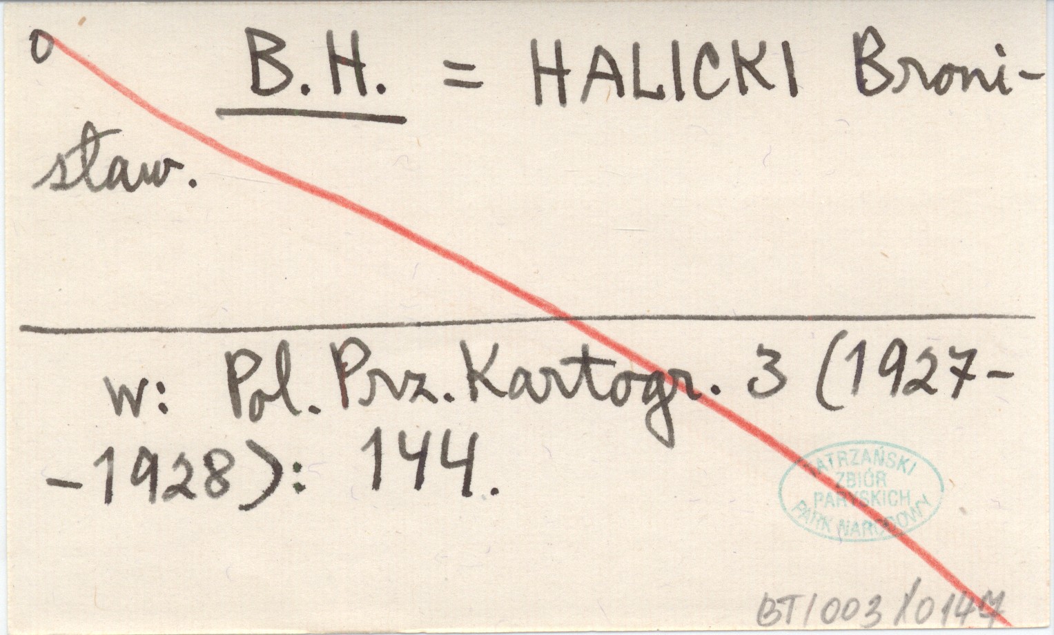 B. H. HALICKI Bronisław Polski Przegląd Kartograficzny 3 (1927-1928): 144.