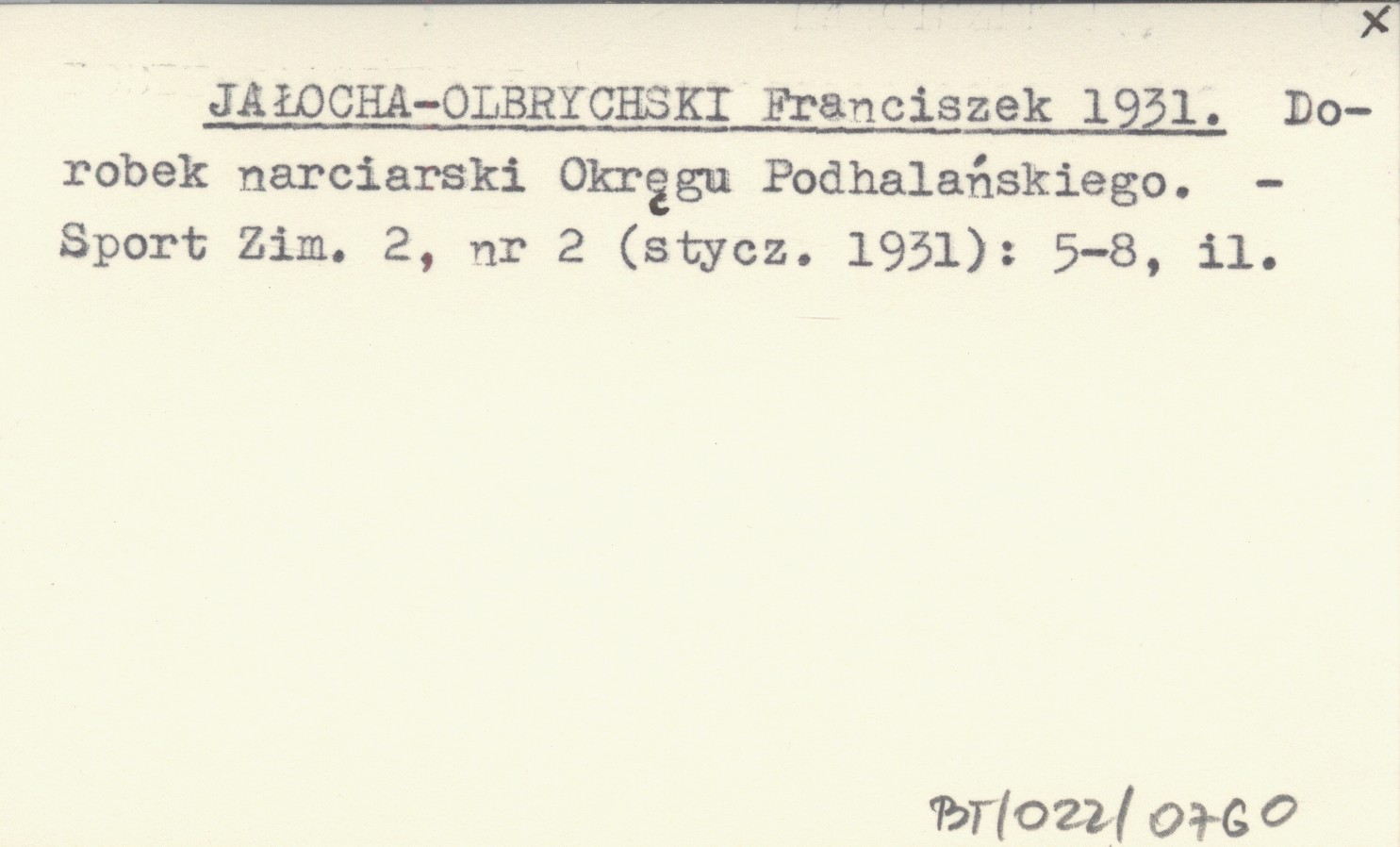 JAŁOCHA-OLBRYCHSKI Franciszek 1931 Dorobek narciarski Okręgu Podhalańskiego.