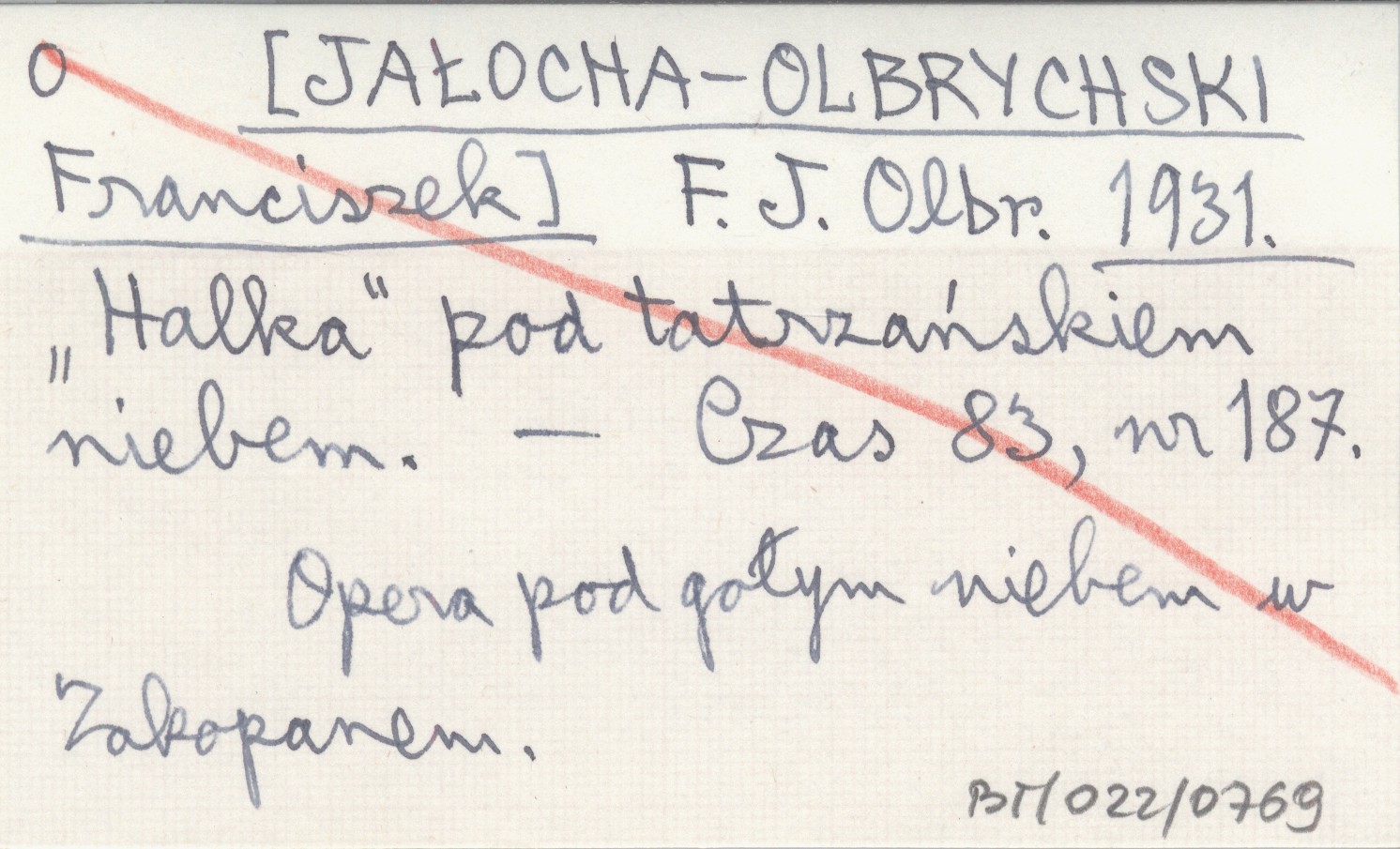 F. J. Olbr. [JAŁOCHA-OLBRYCHSKI Franciszek] 1931 "Halka" pod tatrzańskiem niebem.