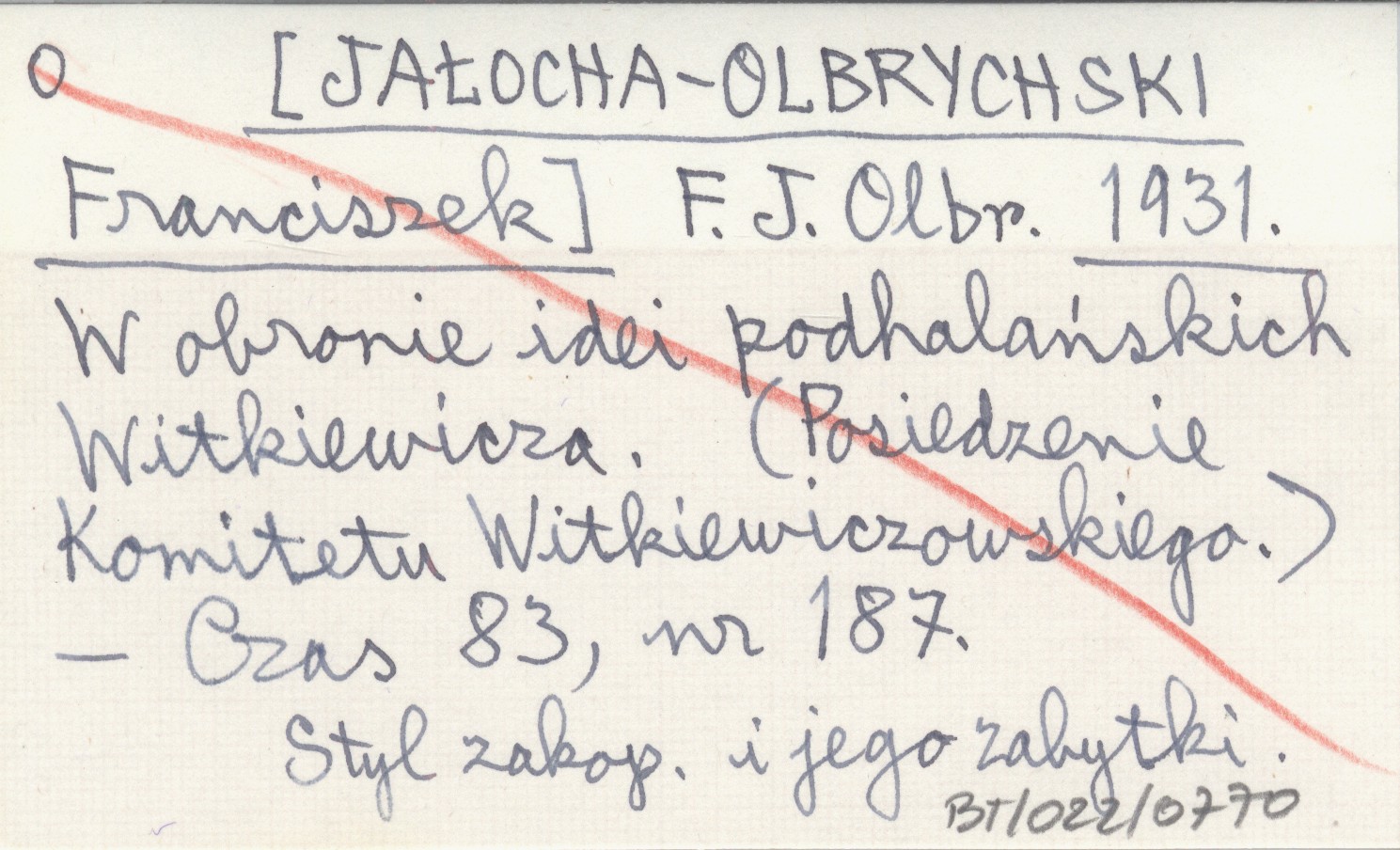 F. J. Olbr. [JAŁOCHA-OLBRYCHSKI Franciszek] 1931 W obronie idei podhalańskich Witkiewicza. (Posiedzenie Komitetu Witkiewiczowskiego).