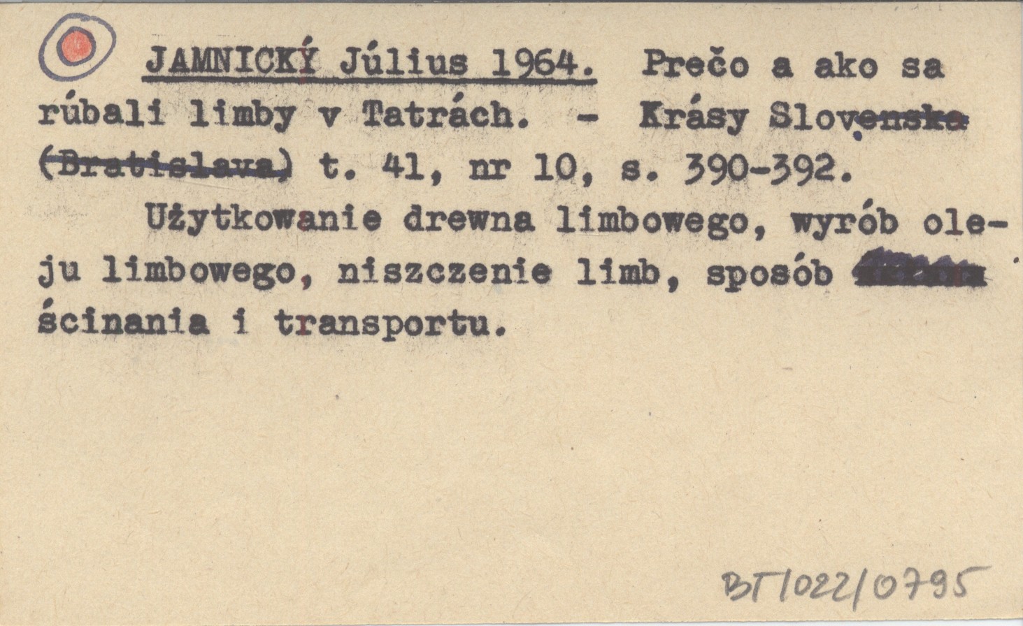 Krásy Slovenska, T. 41, nr 10: 390-392. Użytkowanie drewna limbowego, wyrób oleju limbowego, niszczenie limb, sposób ścinania i transportu.