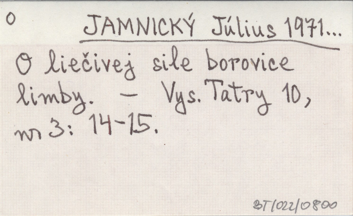 JAMNICKÝ Július 1971... O liečivej sile borovice limby.