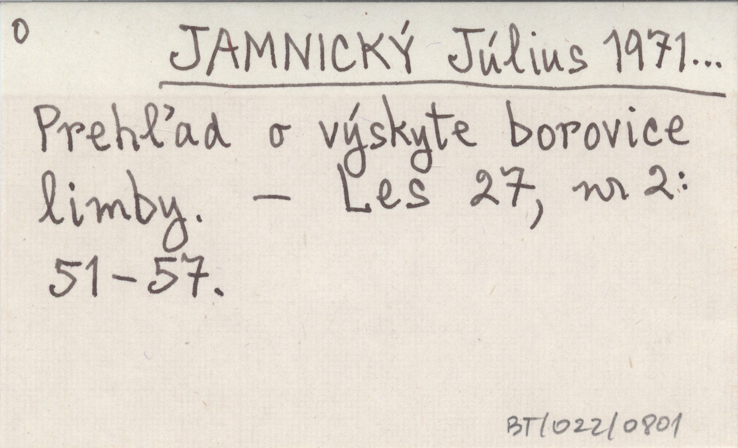JAMNICKÝ Július 1971... Prehľad a výskyte borovice limby.