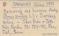 JAMNICKÝ Július 1971 Semenný sad borovice limby (Pinus cembra L.) v ®iarskej doline.