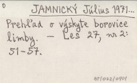 JAMNICKÝ Július 1971... Prehµad a výskyte borovice limby.