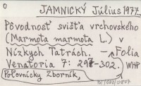 JAMNICKÝ Július 1977... Pôvodnos» svią»a vrchovského (Marmota marmota L.) v Nízkych Tatrách.