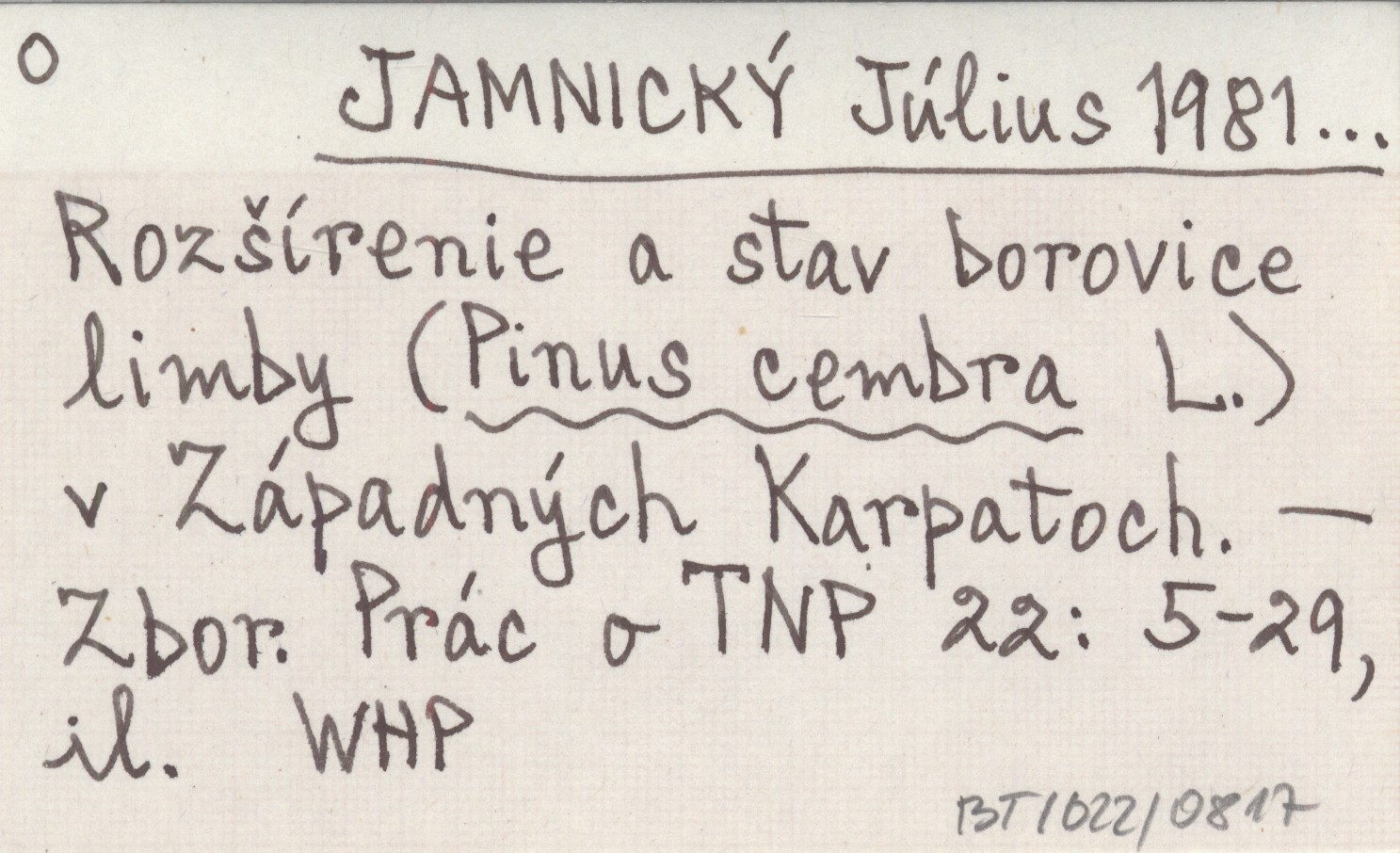 JAMNICKÝ Július 1981... Rozšírenie a stav borovice limby (Pinus cembra L.) v Záůadných Karpatoch.