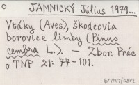 Vtáky (Aves), škodcovia borovice limby (Pinus cembra L.).