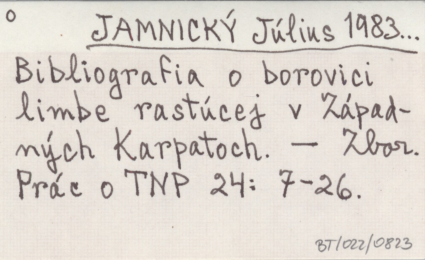 JAMNICKĘ Július 1983... Bibliografia o borovici limbe rastúcej v Západnęch Karpatoch.