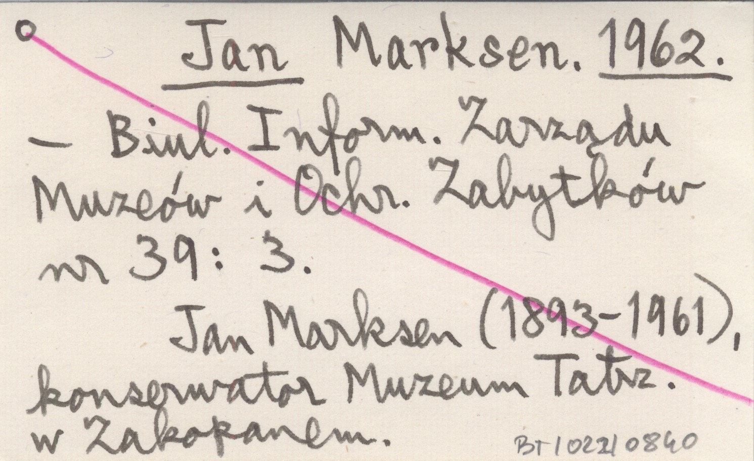 Biuletyn Informacji Zarządu Muzeów i Ochrony Zabytków, Nr 39: 3. Jan Marksen (1892-1961), konserwator Muzeum Tatrzańskiego w Zakopanem.