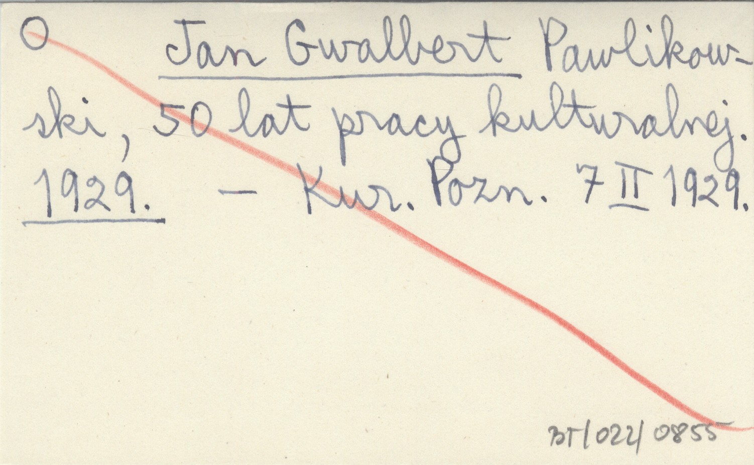 Jan Gwalbert Pawlikowski, 50 lat pracy kulturalnej. 1929