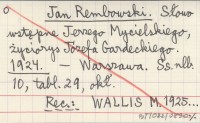Jan Rembowski. Słowo wstępne Jerzego Mycielskiego, życiorys Józefa Gardeckiego. 1924