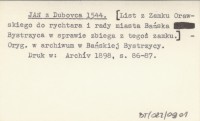 JAN z Dubovca 1544 [List z Zamku Orawskiego do rychtara i rady miasta Bańska Bystrzyca w sprawie zbiega z tegoż zanku].