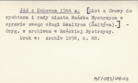 JAN z Dubovca 1544 a [List z Orawy do rychtara i rady miasta Bańska Bystrzyca w sprawie swego sługi Ssaltyna (Šaltýna)].