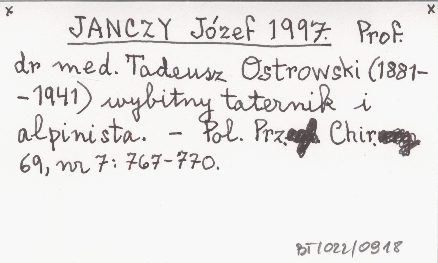 JANCZY Józef 1997 Prof. dr med. Tadeusz Ostrowski (1881-1941) wybitny taternik i alpinista.