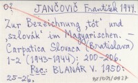 JANČOVIČ František 1944 Zur Bezeichnung ,tót und ,szlovák im Magyarischen.