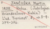 JANČUŠKA Martin 1958 Próza. (Jubilujúci Hviezdoslavov Kubín).