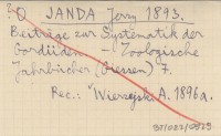 JANDA Jerzy 1893 Beiträge zur Systematik der Gordiiden.