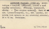JANDEJSEK Vladimír (1952 a) Architektura v krajiňe. (Přírodní, lidové a nové doplňky exterieru). Příklady, tvarosloví, návrhy.