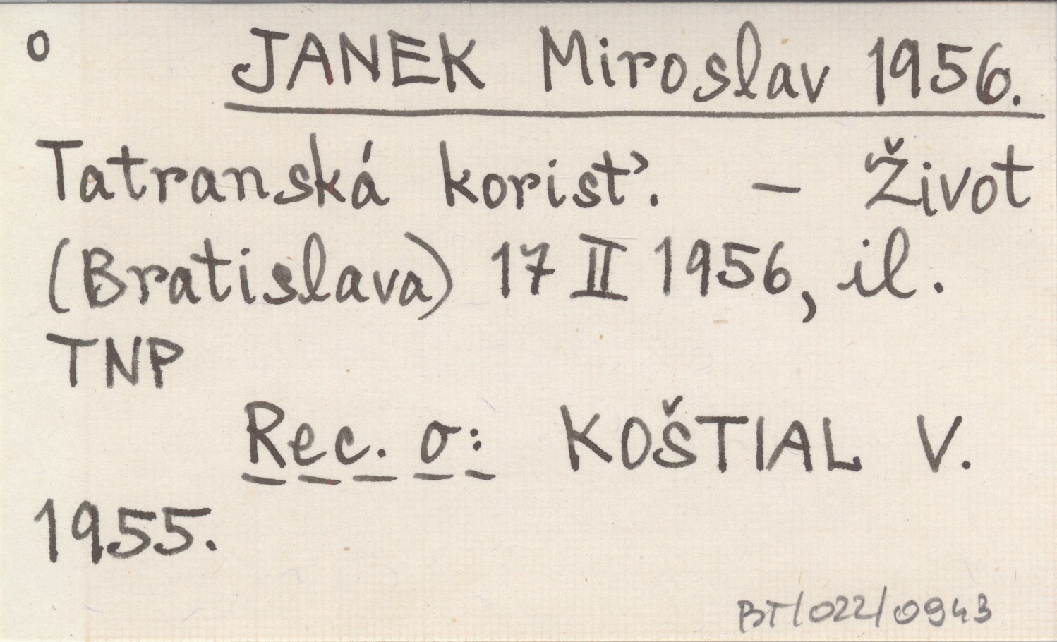REC: KO©TIAL V.: Vysoké Tatry, 1955.