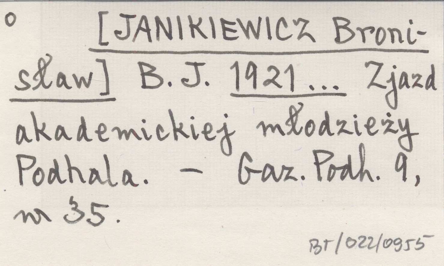 B. J. [JANIKIEWICZ Bronisław] 1921... Zjazd akademickiej młodzieży Podhala.