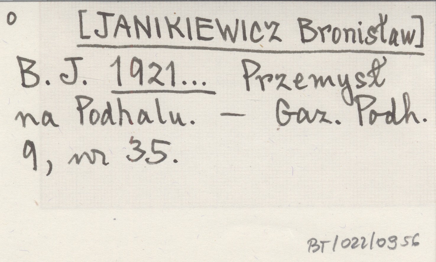 B. J. [JANIKIEWICZ Bronisław] 1921... Przemysł na Podhalu.