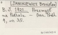 B. J. [JANIKIEWICZ Bronisław] 1921... Przemysł na Podhalu.