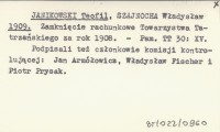 JANIKOWSKI Teofil SZAJNOCHA, Władysław. ; 1909 Zamknięcie rachunkowe Towarzystwa Tatrzańskiego za rok 1908.