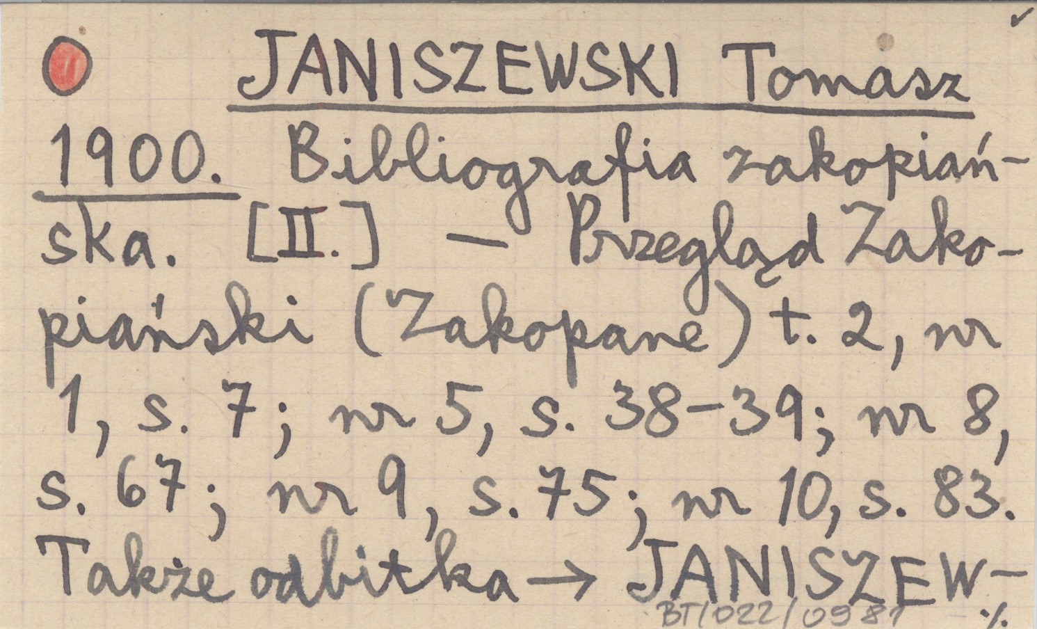 JANISZEWSKI Tomasz 1900 Bibliografia zakopiańska. [II.].