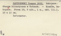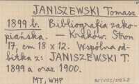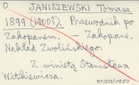 JANISZEWSKI Tomasz 1899 b Bibliografia zakopiańska.