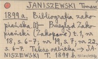 JANISZEWSKI Tomasz 1899 a Bibliografia zakopiańska. [I.].